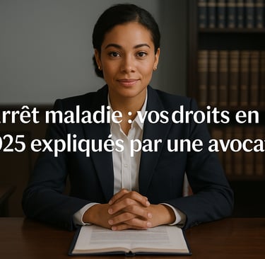 Découvrez un guide complet rédigé par une avocate pour comprendre vos droits en cas d’arrêt maladie en 2025. Cet article détaille les réformes récentes, l’indemnisation, les congés payés et la protection contre le licenciement. Clair, pratique et à jour, il s’adresse à tous les salariés et employeurs. Optimisé pour un référencement maximal sur le droit du travail et la santé au travail. ?
